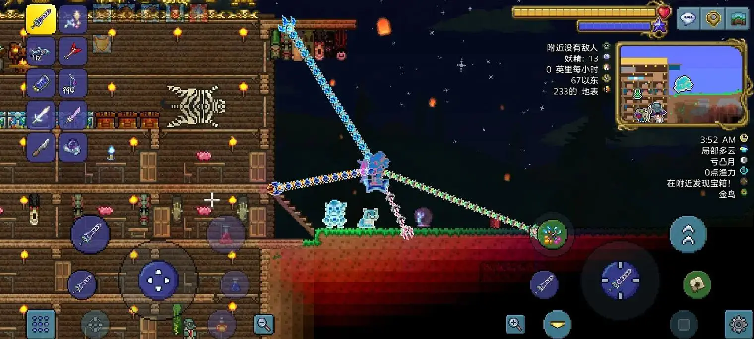 魔光剑不仅是前期过渡的强力武器,更是游戏流程中合成顶级武器永夜刃的核心材料之一。在游戏进程中,玩家还需收集村正、草剑、炽焰巨剑,与魔光剑一起在恶魔祭坛处合成永夜刃。因此,尽早制作出魔光剑,不仅能大幅提升前期探索与战斗的生存能力,也能为后期获取终极装备铺平道路。实际使用时,魔光剑攻速快、手感流畅,搭配增加近战伤害与暴击率的饰品,能在对抗克苏鲁之眼、世界吞噬者等前期Boss时占据优势,其自带的微光特效也能在黑暗洞穴中提供基础照明,减少探索时的意外风险。
