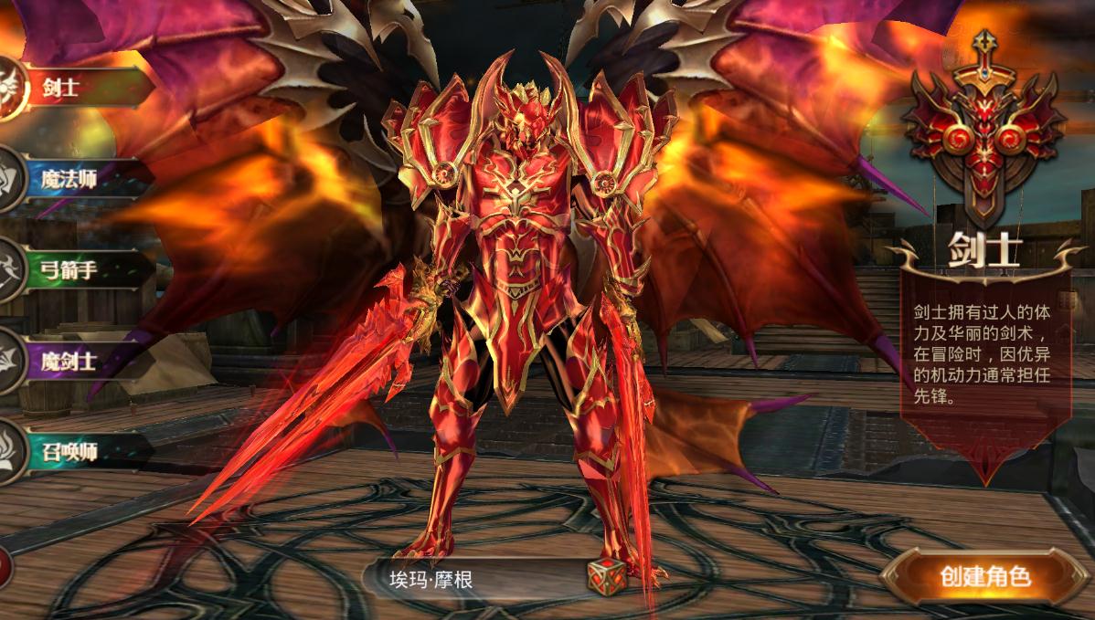 剑士以霸气硬朗的风格著称,身披厚重鎏金铠甲,手持巨剑或双剑,身形魁梧挺拔,战斗时冲锋陷阵,尽显铁血硬汉气质。技能霹雳回旋斩周身剑影环绕,大范围挥砍敌人,雷霆裂闪释放直线闪电冲击并眩晕目标,袭风刺带起凌厉风刃击退敌人,生命之光开启时周身泛起金色光晕,提升团队血量上限。剑士近战打击感强烈,高血量高防御能抗能打,副本中顶在前线吸引火力,PVP时强势突进压制对手,装备强化至高阶后,铠甲与武器散发耀眼红光,搭配巨型火焰翅膀,气场十足,每一次挥砍都充满力量感,连招衔接顺畅,战斗过程热血沸腾,适合喜欢正面硬刚、展现王者风范的玩家。