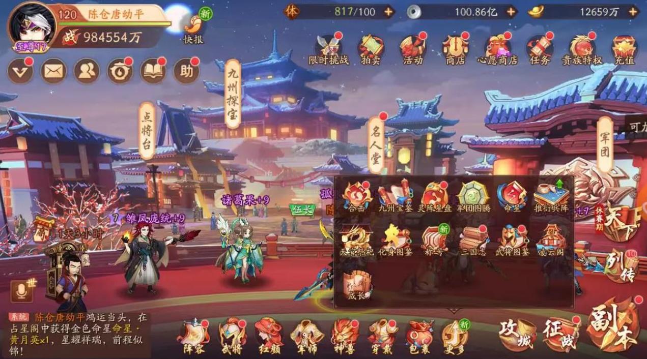 这个等级阶段玩法重心从快速升级转向精细化长线养成,固定同阵营五人成型阵容,完善武将缘分羁绊,合理分配元宝与养成资源,优先补齐核心武将化神、天命、神兵满配,再逐步提升副C与辅助武将强度,搭配高阶兵符、锦囊组合优化实战循环,日常参与限时神兽活动、阵营列传玩法,持续积攒稀有赤金道具,稳步提升全阵容综合战力,从容应对各类PVE副本与PVP对抗玩法。