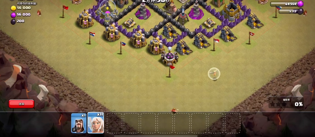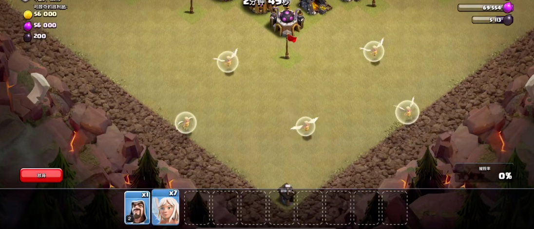 女神搭配天使是所有天女流派的基础,通常配备4至6个天使,能为女神提供持续治疗,让其长时间在战场核心区域输出。下兵时需先放女神吸引火力,再在其身后投放天使,避免天使被防空火力快速集火。搭配法师、龙宝可完成清边任务,防止女神走位偏离规划路线,法师能快速清理外围建筑与小股敌军,龙宝则适合处理角落零散目标。超级炸弹人用于精准爆破城墙,为女神打开深入阵型的通道,配合地震法术可快速突破多层城墙,让女神顺利接近敌方核心防御与英雄。