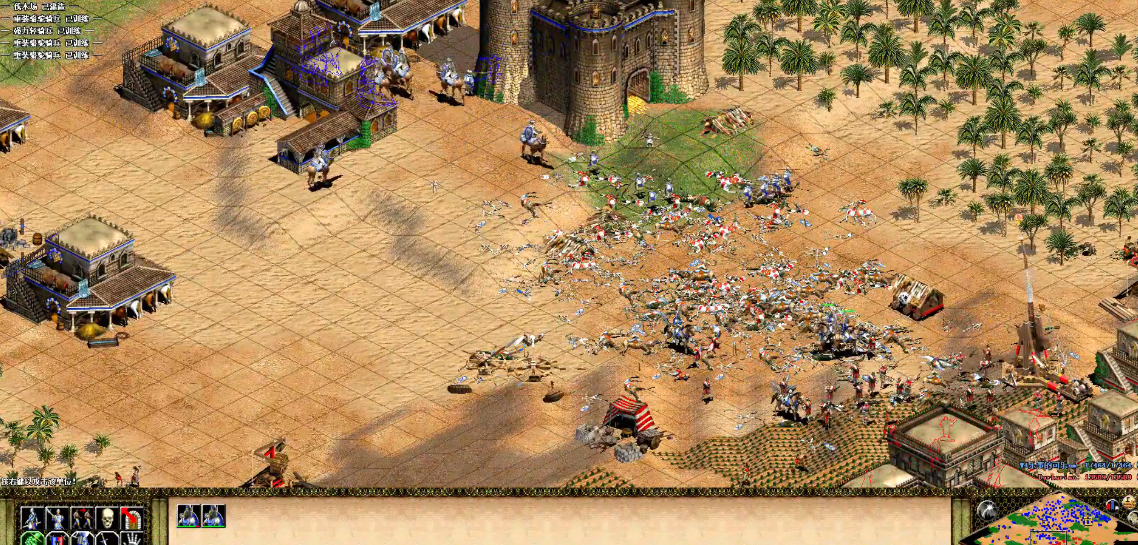 游戏初期需快速采集资源,建立稳定的食物、木材供应线,确保军事建筑持续生产。优先建造靶场和攻城武器厂,同时保持农民数量不低于30名以维持经济运转。通过市场调节资源比例,确保黄金储备足够支撑远程单位的大规模训练。在城堡时代后应尽快升级至帝王时代,解锁更高级别的兵种和科技。