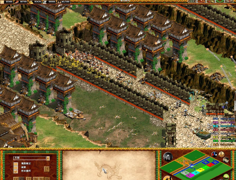 骑士骚扰的同时,家里要保持农民数量在60-80之间,确保资源源源不断。石头资源留给城堡,城堡建在关键资源点或前线。帝王时代升级要果断,优先研发关键科技如骑兵防御和攻击力。后期战斗拼的是资源转化效率,所以农田和伐木场要随时补充,避免资源断档。发展速度不是单纯比谁点得快,而是看谁的经济和军事平衡得更好。侦察兵全程不能停,尽早摸清对手动向;遇到骚扰时用ALT键精准保护村民,别全员躲进城镇中心;每个时代升级前要囤够下一时代的资源;骑兵和攻城武器配合使用效果更好。