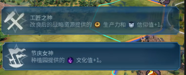 万神殿方面,天空之神和工匠之神是常见选择。天空之城能加速政治哲学路线的解锁,方便早期抢到关键市政;工匠之神则提升奇观建造效率,适合专注抢奇观的玩法。如果开局遇到宗教城邦或自然奇观,也可以选择与地形相关的万神殿,比如沙漠民俗或河流女神。