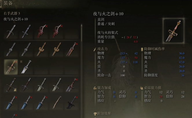 武器选择上,夜与火之剑是智信战士的毕业装备之一,它的战技兼具火系与魔力伤害,清怪效率极高。黄金树圣印记是祷告的优质选择,能提供不错的信仰补正。副手可以带一块百分百物防的中盾,比如黄铜盾,提高生存能力。护符推荐黄金树的恩惠和拉达冈的糜烂烙印,前者提升整体属性,后者减少装备需求。