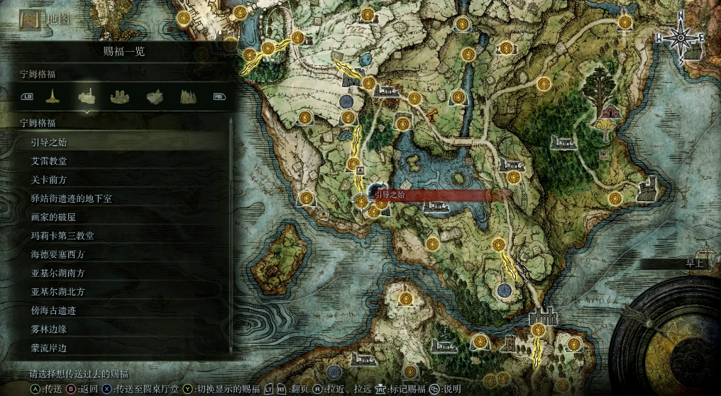探索地图时要养成收集地图碎片的习惯,它们能帮你解锁区域详情。宁姆格福西部的碎片就在关卡前废墟的石碑旁,利耶尼亚东部的则在湖边灯塔图标处。地图上那些发光的小柱子就是赐福点,尽量多激活它们方便传送。遇到商人记得看看他们的商品,水袋、制作工具这些基础物品能大大提升生存能力。背包别装太满,注意负重别超过70%,否则会影响翻滚速度。