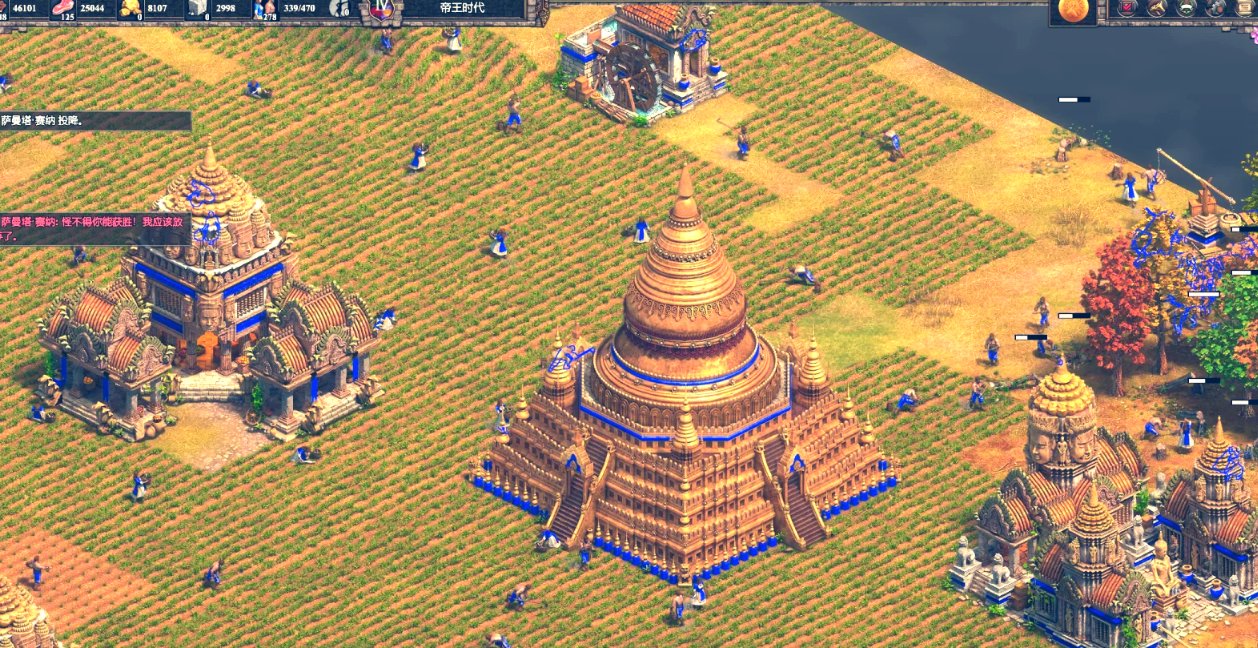 玩好虚空种田,咱们得注意节奏把控。通常进入封建时代后经济稍微稳定了就可以开始布局,但别一股脑全铺满,留点木材应对突发情况。前期还是得安排少量农民正常种田保证食物供应,等资源宽裕了再逐步激活预留的农田。如果遇到敌人骚扰或者需要爆兵,立马让闲置农民去种预留的田,这样转型特别灵活。另外农田会随时间耗尽,记得留好备用田或者用高棉文明的特殊优势实现自动轮耕。