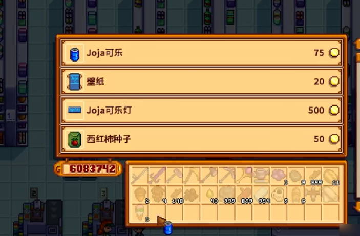 在星露谷里买到可乐,这玩意儿不仅能恢复体力,还能当礼物送人,甚至触发隐藏剧情呢!可乐主要能在Joja超市和星之果实餐吧的自动售货机买到,每瓶只要75金币,性价比超高。Joja超市得先解锁,而餐吧的售货机随时可用,但记得带够钱哦。