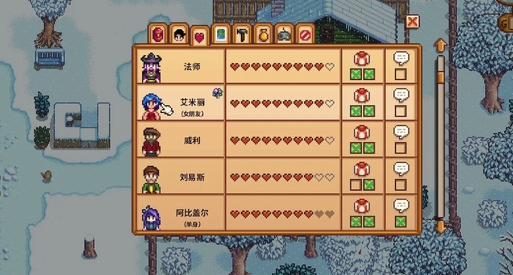 花束只是第一步,后续维持好感需要更用心的经营。每天和对方聊天能小幅增加好感,但别错过每周两次的送礼机会。记得优先选择对方最爱的礼物,比如阿比盖尔喜欢紫水晶,塞巴斯蒂安偏爱生鱼片。如果礼物带金星或铱星品质,好感加成会更高。生日当天送最爱礼物效果翻倍,千万别错过这个黄金时机。