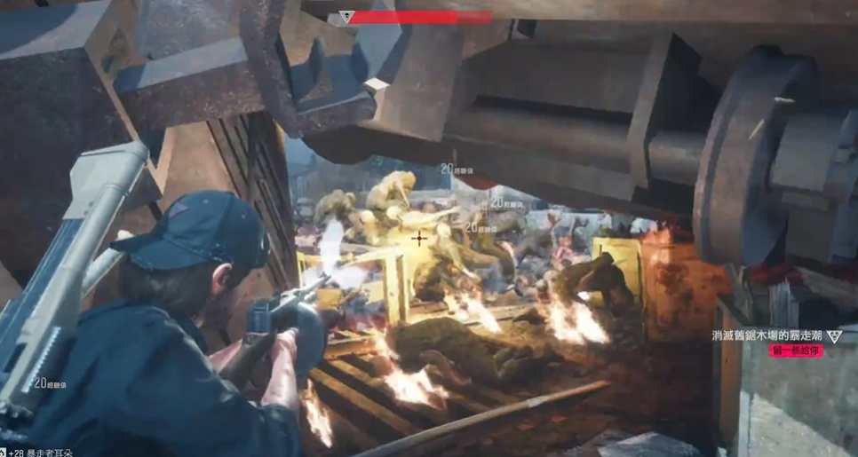 第二阶段需利用场景中的木堆障碍与隧道通道。锯木厂内的圆木堆可按键放下形成临时屏障,阻挡丧尸追击时趁机投掷手雷或射击。隧道狭窄地形能延缓尸潮移动速度,建议预先铺设遥控炸药在铁轨两侧,分次将丧尸引入引爆。若弹药不足,可将部分尸群引至大坝区域,借助山坡高低差进行俯射。建筑物屋顶虽能提供临时安全点,但需注意丧尸攀爬路线可能被包围。