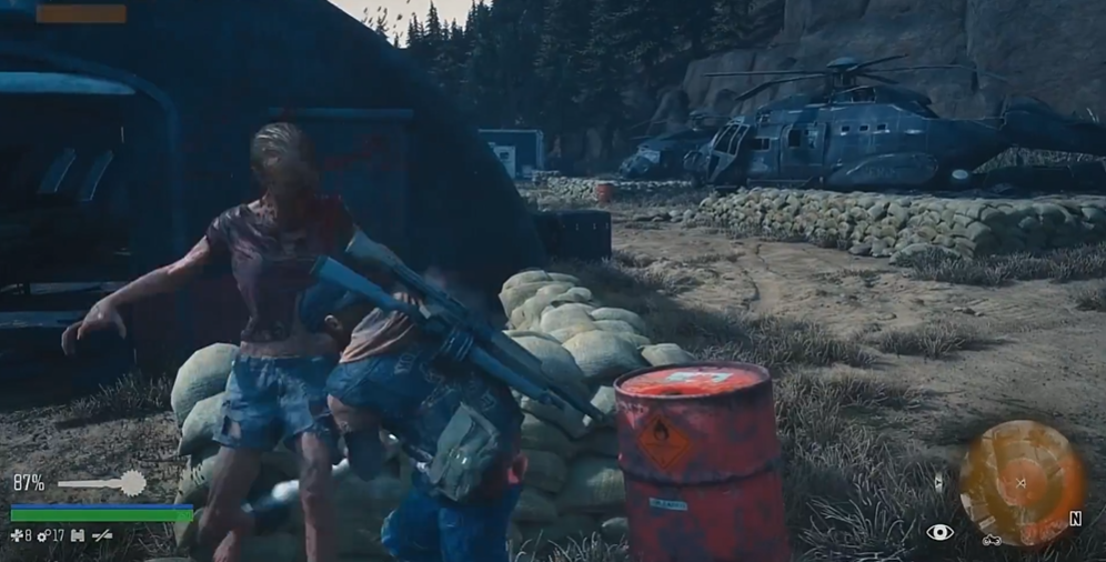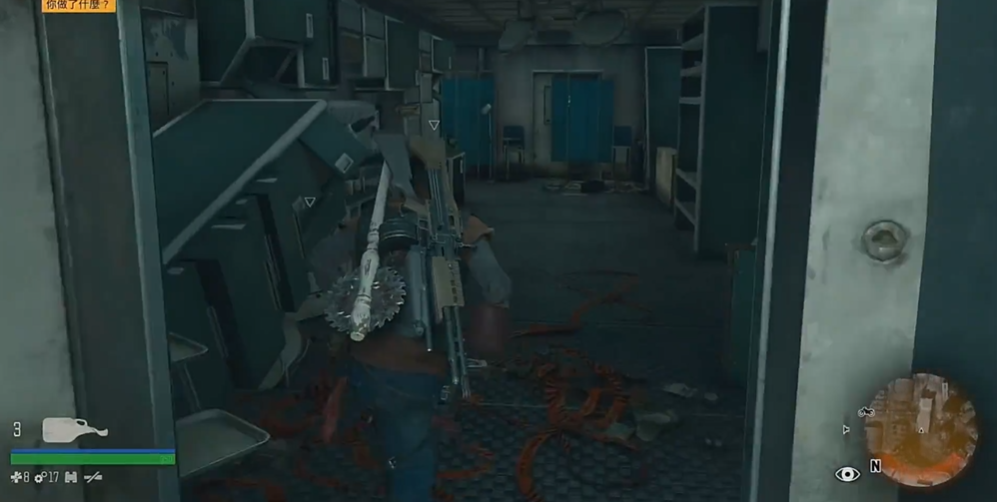 离开墓地后,剧情会引导玩家跟踪一架NERO的直升机。此环节需要全程驾驶摩托车跟随,过程相对简单,直升机会在玩家落后时主动放慢速度。跟踪至任务地点后,时间会进入夜晚,玩家需要在指定区域进行探索。过程中需注意周围有异变者守卫,应利用草丛掩护,趁其不备时快速拾取目标物资。在捡取最后一个物资时,会固定遭遇一个幼变者偷袭并抢走道具,随后需要追赶它,可利用其爬台阶缓慢的弱点追上或直接远程解决,这段追逐战的结果不影响后续主要剧情。