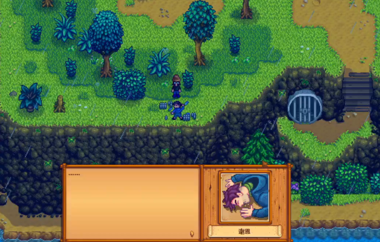 除了好感度,触发该事件的关键是特定的时间与天气。玩家必须在雨天或者暴风雨天气,于游戏内时间的早上9点至晚上8点这个时间段内,前往煤矿森林。只要满足所有条件,进入森林后就会自动触发剧情,看到谢恩醉醺醺地倒在悬崖边,身边堆满了空酒瓶,随后便会进入那段关于生命意义的沉重对话。