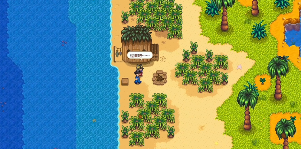 除了使用喷壶制造临时路径,游戏后期提供了一种永久性过河解决方案。当玩家首次成功通过全部十层火山地牢抵达山顶后,返回地牢入口处可以与一只鹦鹉互动。支付五个金核桃作为报酬,鹦鹉会为玩家建造一座坚固的木桥,永久跨越那条入口处的岩浆河。此举能极大简化日后重复进入火山地牢的流程,无需再每次消耗喷壶的浇水次数。