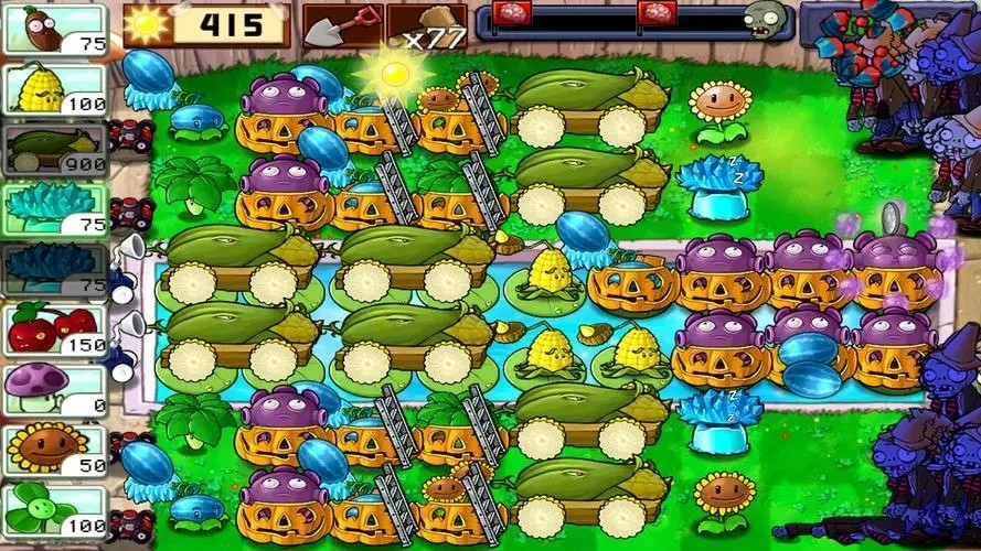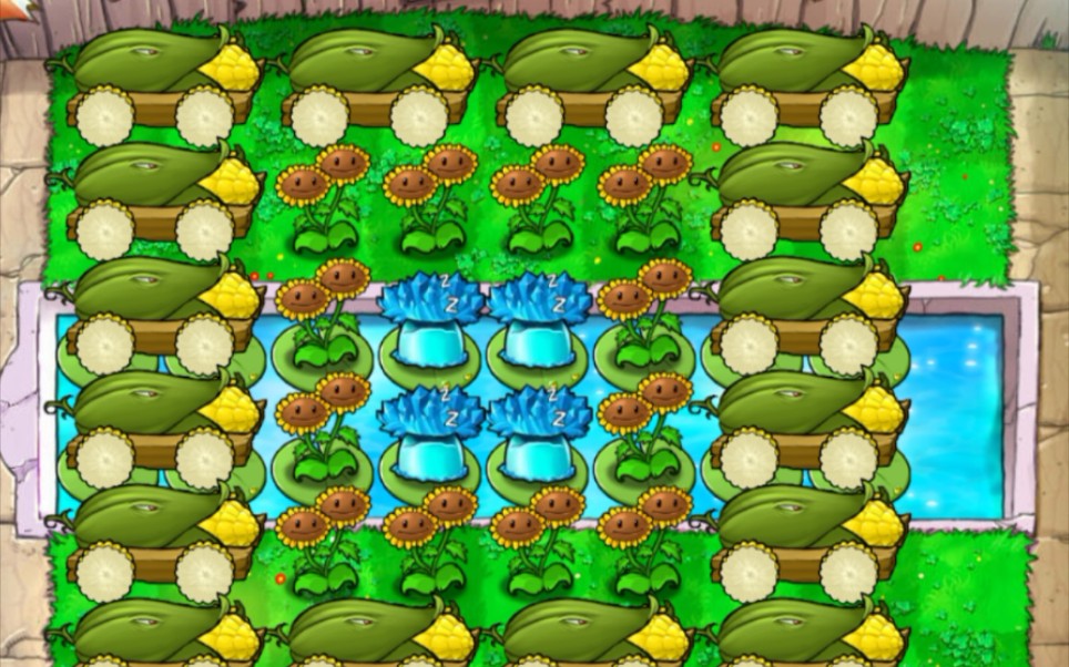 后期阳光储备充足后,逐步将水池寒冰香蒲全部替换为冰冻西瓜大喷菇,形成全屏双重冰冻效果,大幅延缓僵尸推进速度。陆地后排补充寒冰仙人掌、玉米卷心菜,集中火力打击铁盔巨人,快速破除其防御并削减血量。最后一波攻势前,确保每行都有磁力坚果防护,多余向日葵可铲除以增加输出植物,让火力覆盖更全面。全程紧盯僵尸行进路线,发现防御缺口立即补植植物,避免单个僵尸突破导致防线崩盘。