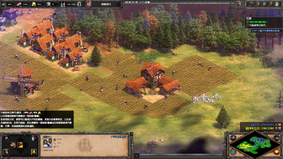 黑暗时代需高效调配资源,初始农民优先采集浆果与绵羊,侦察兵快速探路引诱野猪,确保食物稳定采集,同时分配适量农民伐木,保障基础木材供应,利用采集浆果效率提升的优势加快发育节奏,全程不做多余军事建造,专注经济积累,为快速攀升封建时代筑牢根基。封建时代不展开军事行动,核心任务是平稳过渡到城堡时代,用木栅栏完善基地防御防止骚扰,持续补充农民并优化资源分配,保证食物、木材、黄金均衡采集,农田升级免费可节省大量资源,无需额外投入木材与黄金,直接进入高效食物产出阶段,黄金采集需提前布局,确保进入城堡时代后有充足资源开启马厩。