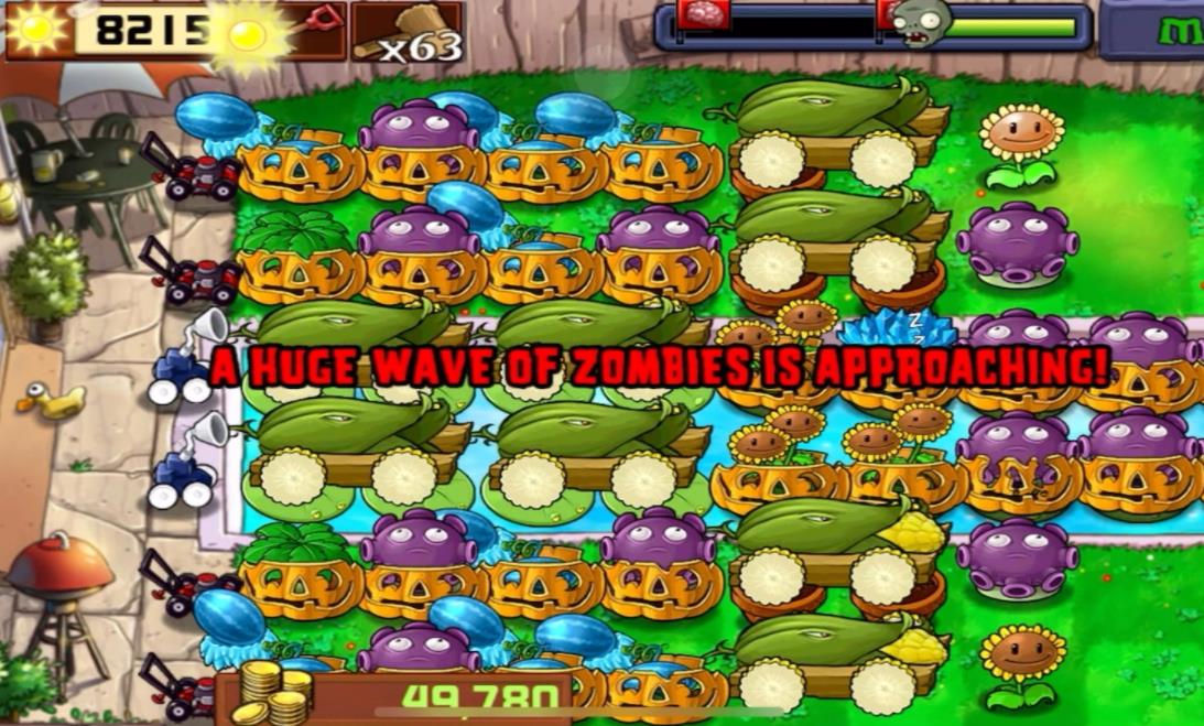 中后期僵尸会成群进攻,还会出现巨人僵尸、迪斯科僵尸等强力单位,此时要全面升级阵容,将普通豌豆替换为机枪豌豆,搭配火炬树桩让豌豆伤害翻倍,冰西瓜投手尽量覆盖所有线路,实现群体减速与持续伤害,玉米加农炮、西瓜投手组成核心重火力,应对巨人僵尸与密集尸潮。同时保留火爆辣椒、樱桃炸弹等应急植物,遇到僵尸扎堆或巨人突破防线时快速清场,能量花可补充能量豆,给关键输出植物释放大招,实现瞬间爆发清场。布局时防御植物靠前,输出植物居中,阳光植物靠后,每行保持至少一个控制植物与两个输出植物,形成稳定的防御—减速—输出链条,遇到迷雾、屋顶等特殊场景时,及时搭配灯笼草、花盆等适配植物,避免环境因素影响布防。